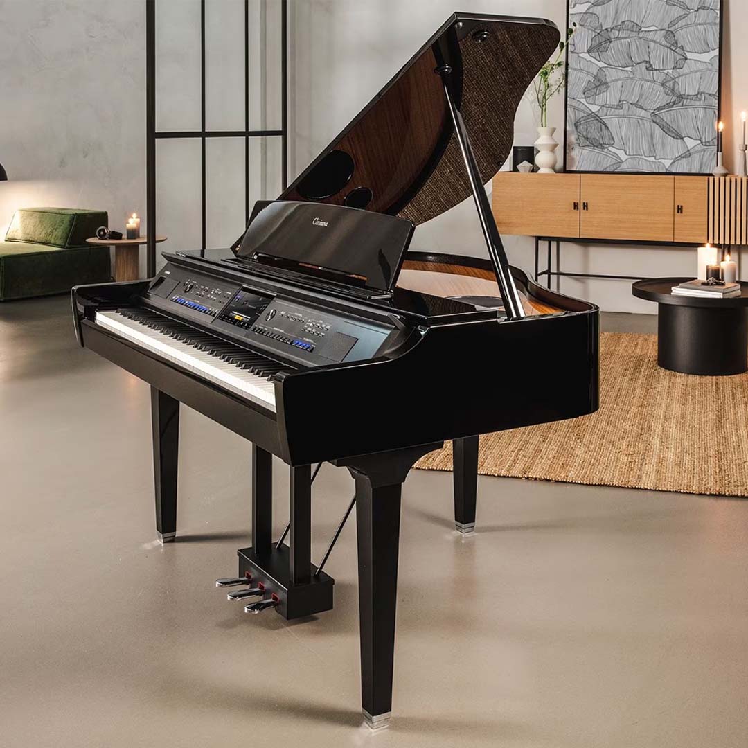 El Yamaha CVP-909GP es un piano digital de gran diseño y tecnología. Su aspecto imponente y elegante captura la esencia de un piano de cola tradicional, agregando un toque de lujo a cualquier espacio. Además, cuenta con un teclado de madera natural con acción de martillo graduado (GH3X), que brinda una respuesta y una sensación auténticas al tocar.